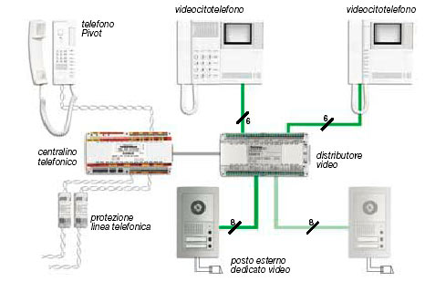 Naturalmente il centralino telefonico può essere interfacciato con gli altri impianti bus esistenti, quali l’illuminazione (per comandare ad esempio dai telefoni di casa ogni tipo di scenario di luci, di tapparelle o di qualsiasi altra automazione), la videocitofonia (è possibile trasferire una chiamata citofonica verso il proprio cellulare mentre si è assenti, potendo così rispondere a chi suona il campanello, con la facoltà di aprire anche il portoncino elettrico).